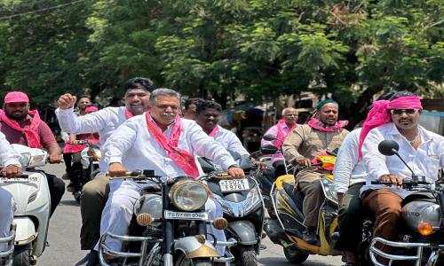 Ekaburu - శేరిలింగంపల్లి / రంగారెడ్డి : చేవెళ్ల బీఆర్ఎస్ పార్టీ అభ్యర్థి కాసాని జ్ఞానేశ్వర్ ముదిరాజ్ ను గెలిపించాలని కోరుతూ ఎన్నికల ప్రచారం చివరి రోజు శనివారం గచ్చిబౌలి డివిజన్ బీఆర్ఎస్ శ్రేణులు భారీ బైక్ ర్యాలీ నిర్వహించారు. గచ్చిబౌలి డివిజన్ మాజీ కార్పొరేటర్ కొమిరిశెట్టి సాయిబాబా ఆధ్వర్యంలో బీఆర్ఎస్ నాయకులు, కార్యకర్తలు డివిజన్ మొత్తం ర్యాలీ నిర్వహించారు. ఖాజాగూడలోని బీఆర్ఎస్ పార్టీ కార్యాలయం నుంచి ప్రారంభమైన ర్యాలీ రాయదుర్గం, టెలీకామ్ నగర్, గచ్చిబౌలి, జిపిఆర్ఏ క్వార్టర్స్, గుల్మోహర్ పార్క్, నల్లగండ్ల, గోపన్ పల్లి, ఎన్టీఆర్ నగర్, గౌలిదొడ్డి, నానక్ రాంగూడ మీదుగా సాగింది. ఈ సందర్భంగా సాయిబాబా మాట్లాడుతూ చేవెళ్ల పార్లమెంటు నియోజకవర్గంలో మరోసారి బీఆర్ఎస్ పార్టీ విజయకేతనం ఎగురవేసి హ్యాట్రిక్ విజయాన్ని నమోదు చేయడం ఖాయమన్నారు.