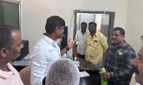 కార్యాలయంలో ఉన్న జలమండలి మేనేజర్ యాదగిరి తో రాధాకృష్ణ యాదవ్ ప్రజలు ఎదుర్కొంటున్న సమస్యలపై చర్చించారు. సాయి నగర్ వాసుల గత రెండునెలలుగా మంచినీటి సమస్య తో ఇబ్బందులు పడుతున్నారని, అధికారుల నిర్లక్ష్యం కారణంగా నేటికి సమస్య పరిష్కారానికి నోచుకోలేదని అన్నారు. సాధ్యమైనంత త్వరగా మంచినీటి సమస్య ను పరిస్కరించాలని డిమాండ్ చేశారు. వారం రోజులలో రెండు విజిట్స్ చేసి సమస్యను పరిష్కరిస్తానని వాటర్ వర్క్స్ మేనేజర్ యాదగిరి హామీ ఇచ్చారు.. ఈ కార్యక్రమంలో బస్తివాసులు నర్సింహా, సుభాని, ఆనంద్,శివ, కుమార్ స్వరూప, నాగేశ్వరరావు, లక్ష్మణ్,గోపాల్, రాజు, ఉపేందర్, సంపాన్ లాల్, నిరంజన్, వినయ్,రాజు, చిరంజీవి, జగతి దేవి, స్వరూప,నాగేశ్వరరావులతో పాటు పలువురు బస్తివాసులు పాల్గొన్నారు.