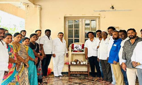ప్రజా గాయకుడు గద్దర్ కు ఘన నివాళి... ప్రజా యుద్ధ నౌక, ప్రజా గాయకుడు గద్దర్ మొదటి వర్ధంతి సందర్భంగా గచ్చిబౌలి డివిజన్ బీఆర్ఎస్ పార్టీ కార్యాలయంలో ఆయన చిత్రపటానికి శేరిలింగంపల్లి బీఆర్ఎస్ సీనియర్ నాయకులు, మాజీ కార్పొరేటర్ కొమిరిశెట్టి సాయిబాబా పూలమాలవేసి నివాళులర్పించారు. ఈ సందర్భంగా సాయిబాబా మాట్లాడుతూ తెలంగాణ ప్రత్యేక రాష్ట్ర సాధనలో గద్దర్ పాత్ర ఎంతో కీలకమని, ఆయన తన గేయాలతో తెలంగాణ యువతలో ప్రత్యేక రాష్ట్ర ఆకాంక్షను రగిలించారని అన్నారు. ఈ కార్యక్రమంలో బీఆర్ఎస్ పార్టీ నాయకులు, కార్యకర్తలు పాల్గొన్నారు.