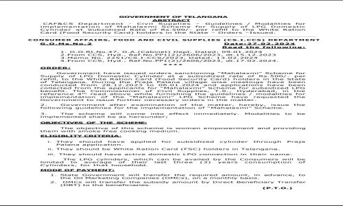 Ekaburu - స్పెషల్ స్టోరీస్ / హైదరాబాద్ : తెలంగాణ రాష్ట్ర ప్రభుత్వం మహాలక్ష్మి పథకం సబ్సిడీ గ్యాస్ సిలిండర్ మార్గదర్శకాలను మంగళవారం విడుదల చేసింది. మహాలక్ష్మి పథకంలో భాగంగా అర్హులైన లబ్ధిదారులకు రూ. 500 కే గ్యాస్ సిలిండర్ ను సబ్సిడీపై అందజేయనున్నారు. ఈ పథకానికి అర్హులైన లబ్ధిదారులను ఎంపిక చేసి వారు గత మూడు సంవత్సరాలుగా వినియోగించిన గ్యాస్ సిలిండర్లను పరిగణలోకి తీసుకొని సబ్సిడీ సిలిండర్లను సరఫరా చేయనున్నారు ఇందుకోసం ప్రభుత్వం గ్యాస్ కంపెనీలకు అడ్వాన్సుగా సబ్సిడీ డబ్బును అందజేయనుంది. సిలిండర్ తీసుకునే సమయంలో వినియోగదారులు పూర్తి డబ్బును చెల్లించాల్సి ఉండగా, ఎంపికైన లబ్దిదారులకు 500పైన చెల్లించే డబ్బును తిరిగి వారి అకౌంట్లలో జమ చేయనున్నారు. ఈ మేరకు ప్రభుత్వం మంగళవారం విడుదల చేసిన మార్గదర్శకాల ప్రకారం లబ్ధిదారుల ఎంపిక... - రాష్ట్ర ప్రభుత్వం డిసెంబర్ 28 నుంచి జనవరి6వ తేదీ వరకు నిర్వహించిన ప్రజాపాలనలో దరఖాస్తు చేసుకొని ఉండాలి. (ప్రజాపాలనలో దరఖాస్తు చేయనివారు అనర్హులు) - తెలంగాణ రాష్ట్ర ప్రభుత్వ తెల్ల రేషన్ కార్డు దారులు మాత్రమే అర్హులు. (తెల్ల రేషన్ కార్డు లేని వారు, ప్రజాపాలనలో తెల్ల రేషన్ కార్డు కోసం దరఖాస్తు చేసుకున్న వారు సైతం అనర్హులు) - లబ్ధిదారుల గ్యాస్ సిలెండర్ కనెక్షన్ విధిగా దరఖాస్తు దారు పేరు మీదే ఉండాలి. (కుటుంబ సభ్యుల పేరు మీద గ్యాస్ కనెక్షన్ ఉంటే అనర్హులు)