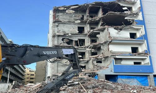 Ekaburu - హైదరాబాద్ / హైదరాబాద్ : మియాపూర్ లో అక్రమ భవనంపై హైడ్రా యాక్షన్ ప్రారంభించింది. అమీన్పూర్ మున్సిపాలిటీ పరిధిలో అనుమతులు తీసుకొని పక్కనే ఉన్న శేరిలింగంపల్లి మండల పరిధిలోని ప్రభుత్వ భూమిని ఆక్రమించి నిర్మించిన ఓ అక్రమ భవనాన్ని హైడ్రా అధికారులు శనివారం కూల్చివేస్తున్నారు. భారీ పోలీసు బందోబస్తు మధ్య ఐదంతస్తుల అక్రమ భవనం కూల్చివేత పనులను అధికారులు కొనసాగిస్తున్నారు. ఏకంగా హెచ్ఎండిఏ భూమికే ఎసరు పెట్టిన కేటుగాళ్లు నకిలీ ఎల్ఆర్ఎస్, ఎల్ఆర్ఎస్ కు కట్టినట్టు నకిలీ డిడిని సృష్టించి అక్రమ నిర్మాణం చేపట్టారు. దీనికి సంబంధించిన వివరాలు ఇలా ఉన్నాయి...