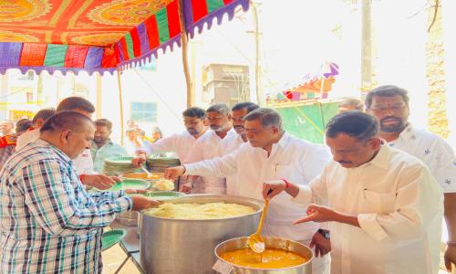 Ekaburu - శేరిలింగంపల్లి / రంగారెడ్డి : శేరిలింగంపల్లి నియోజకవర్గం గచ్చిబౌలి డివిజన్ పరిధిలోని నల్లగండ్ల శ్రీ సోమేశ్వర స్వామి దేవస్థానంలో శనివారం నిర్వహించిన ప్రత్యేక పూజల్లో గచ్చిబౌలి డివిజన్ మాజీ కార్పొరేటర్ కొమిరిశెట్టి సాయిబాబా పాల్గొని ప్రత్యేక పూజలు నిర్వహించారు. సోమేశ్వర దేవస్థానం చైర్మన్ పురం విజేందర్ రెడ్డి, ఆలయ కమిటీ సభ్యులతో కలిసి సాయిబాబా ప్రత్యేక పూజలు, స్వామివారి అభిషేక పూజల్లో పాల్గొన్నారు. అనంతరం సోమేశ్వర స్వామి దేవస్థానం పూజల్లో పాల్గొన్న భక్తులకు మాజీ కార్పొరేటర్ సాయిబాబా ఆధ్వర్యంలో అన్నసమారాధన ఏర్పాటు చేశారు. ఆలయ కమిటీ సభ్యులతో కలిసి సాయిబాబా అన్నదాన కార్యక్రమాన్ని ప్రారంభించారు.